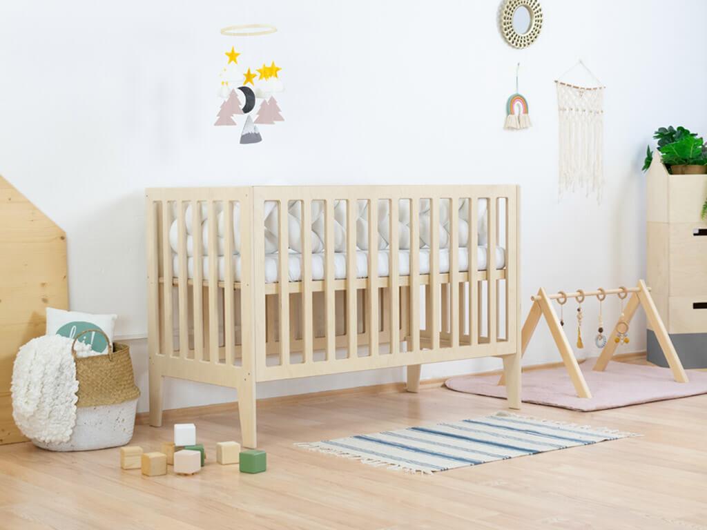Was ist das Wichtigste außer der Liebe der Eltern, was jedes Kind braucht? Richtig, ein perfekter Ort für einen guten Schlaf. Diesen bekommt Dein Baby im 60×120 cm Babybett KIPPY. Das Babybett wird von allen Seiten gut belüftet. Du kannst es auf zwei verschiedene Liegehöhen einstellen. Die obere Position eignet sich für Neugeborene, die untere für Babys, die bereits wissen, wie man sich ohne Hilfe hinsetzt.