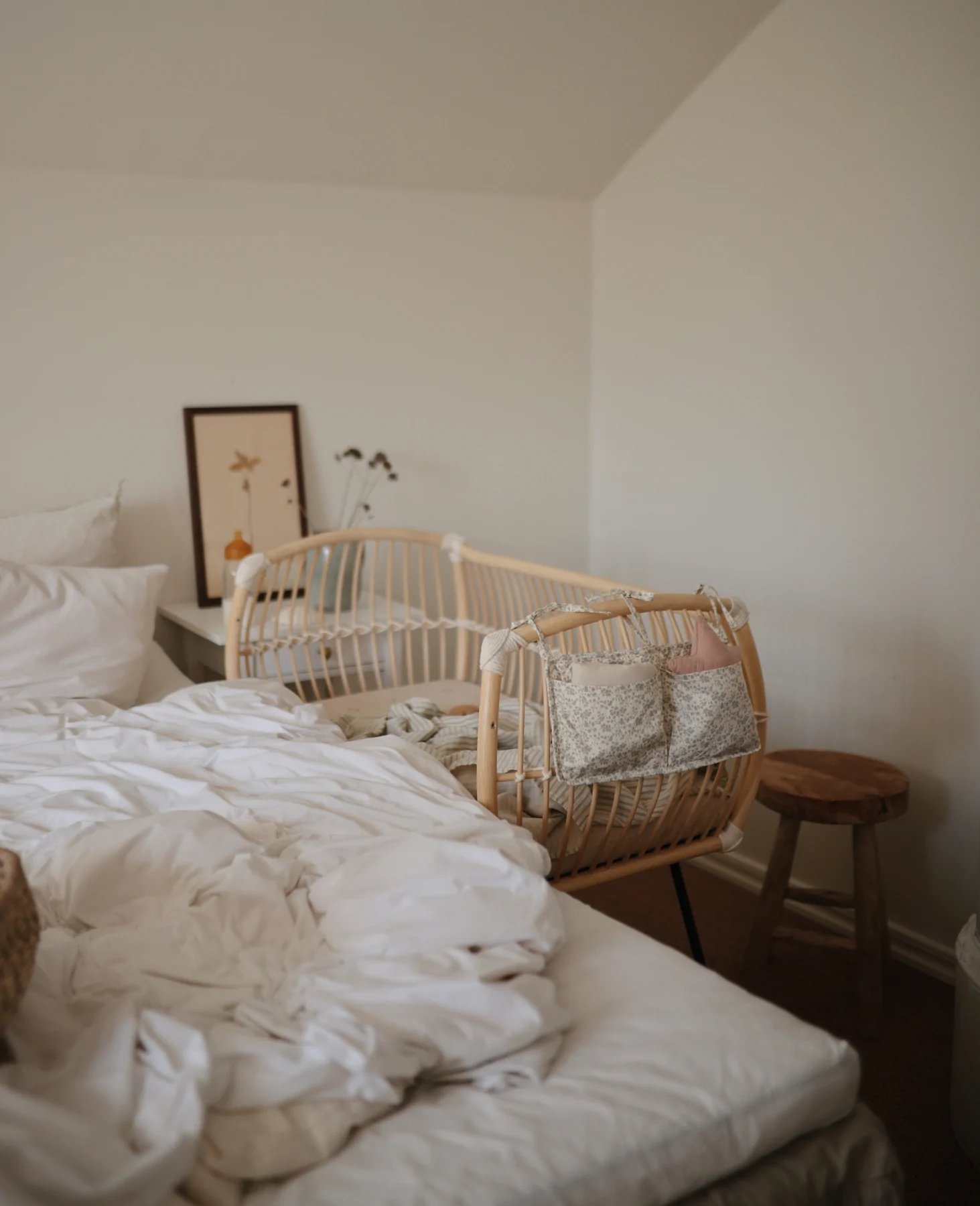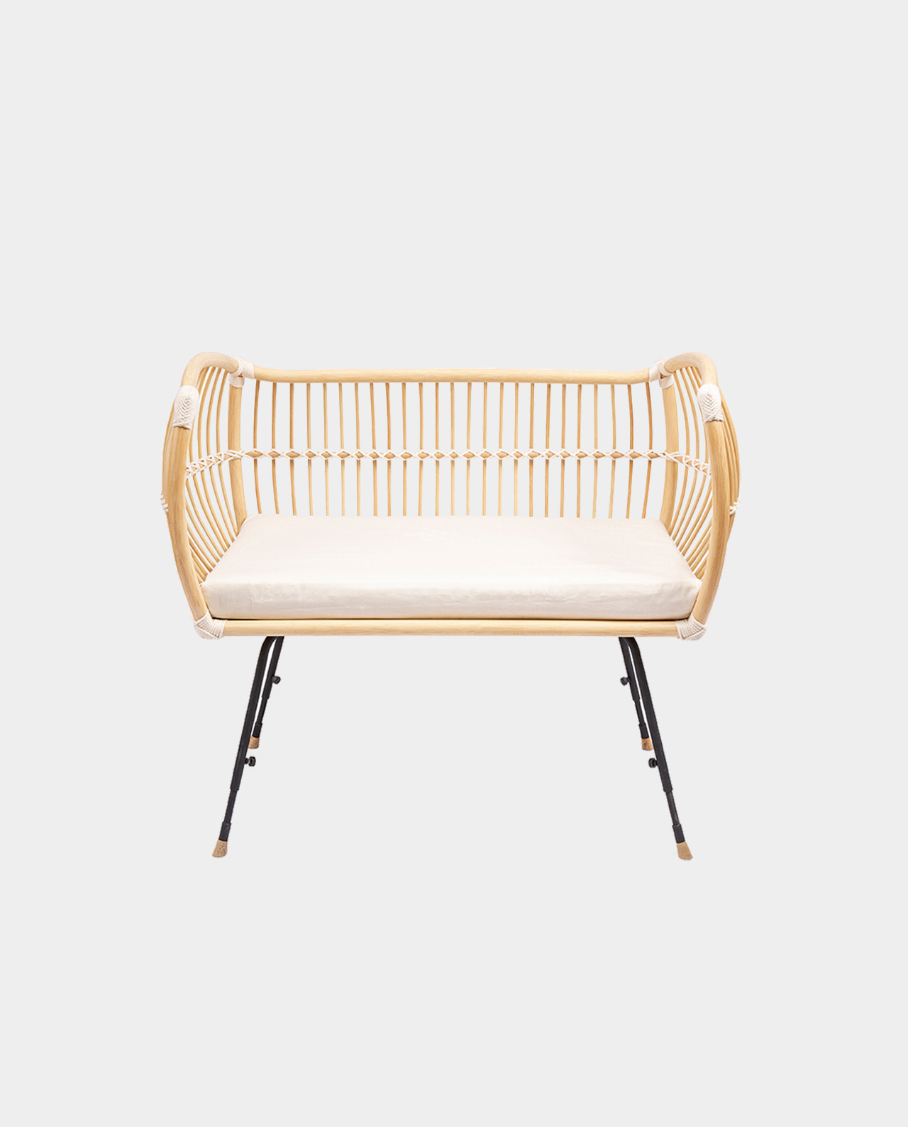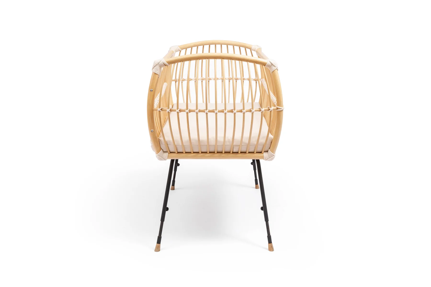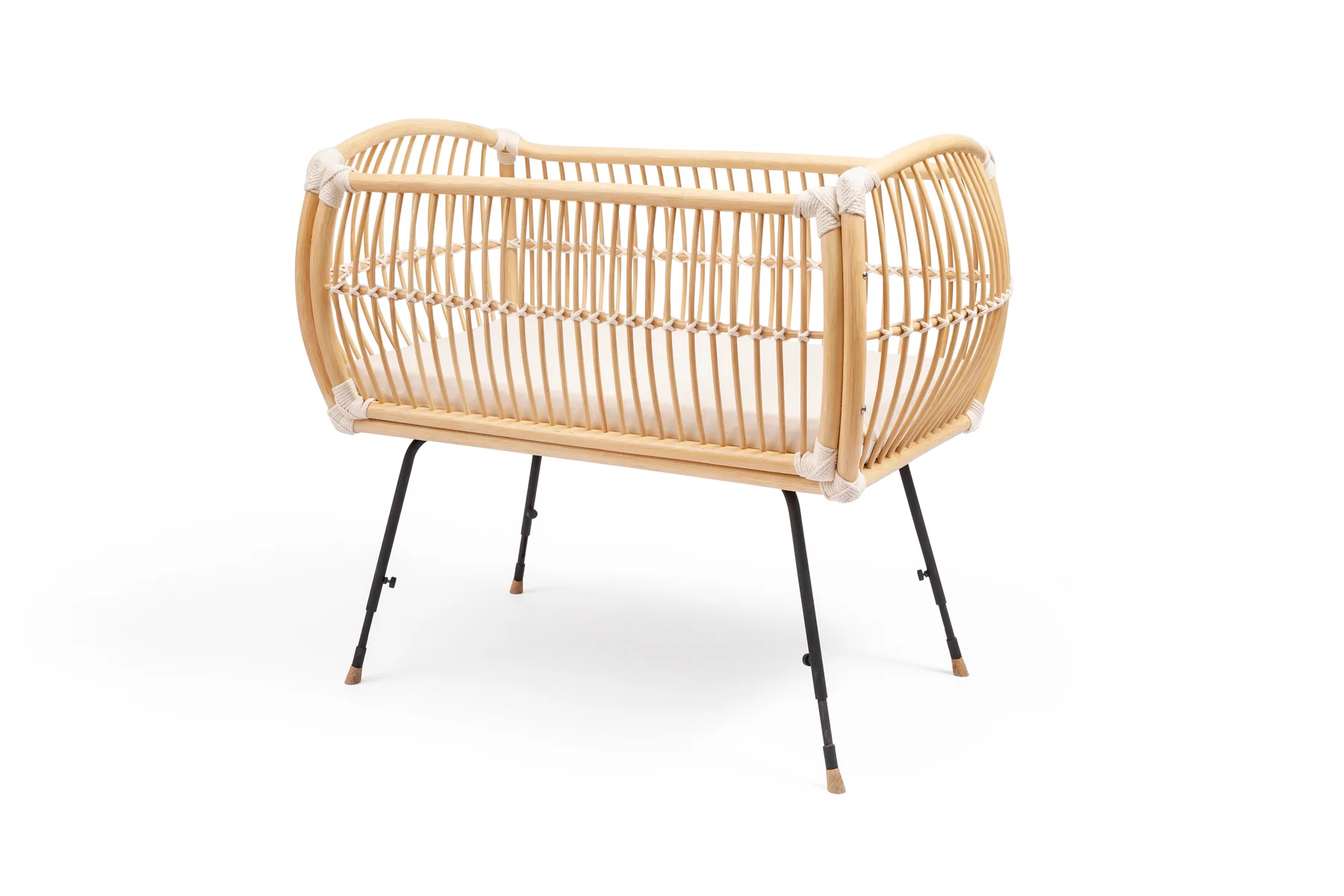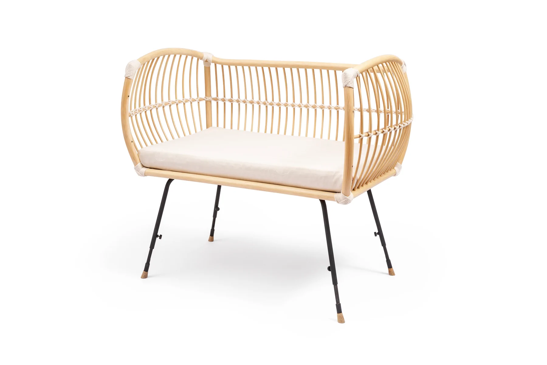 Mit dem Beistellbett MARTHA VEGAN ist dein Baby ganz nah bei dir und dennoch in seinem eigenen Bettchen. Durch die schützende und nach aussen gewölbte Wand des Korbes wirkt das Beistellbett wie ein behütendes Nest. Das Beistellbett MARTHA VEGAN hat höhenverstellbare Füße aus Metall. Damit kann das Beistellbett an unterschiedliche Betthöhen angepasst werden. Das Bettchen zeichnet sich durch ein leichtes, transparentes Design aus. Dennoch ist es äußerst stabil. Die schmalen Riemen aus Baumwoll-Seilen verbinden die einzelnen Stäbe des Rattan Korbes und verleihen dem Beistellbett seine enorme Festigkeit. Für eine sichere Bodenauflage sorgen kleine Fußenden aus Eichenholz. Bei Bedarf kann die offene Seite durch das mitgelieferte extra Element einfach mit 4 Schrauben verschlossen werden, sodass das Bett auch für sich alleine stehen kann.