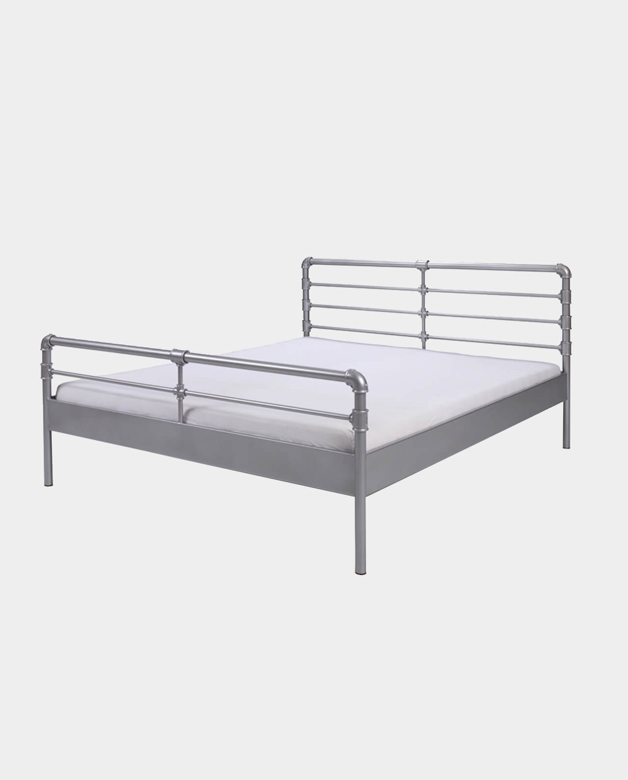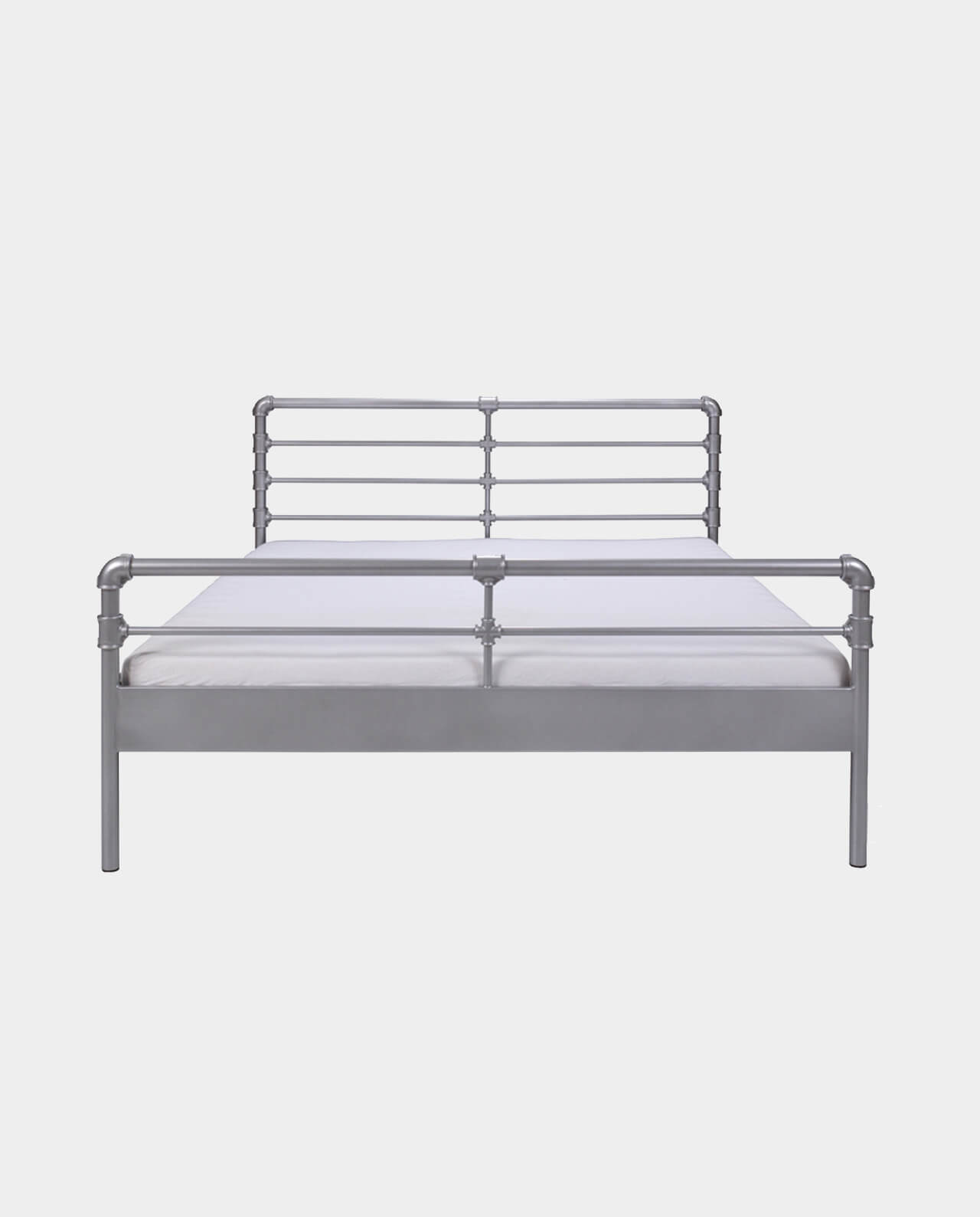 Das Industrial Bett NODUS ist ein moderner Hingucker aus Metall. Es wird in liebevoller und aufwändiger Handarbeit mit Temperguß-Fittings verziert. Dadurch erhält das Metallbett seinen besonderen Industrial Look. Das Bett gibt es pulverbeschichtet in den Farben Silber, Weiß und Schwarz als auch “roh” mit Schleifspuren und Macken. Das Bett im Rohstahl Look ist nur mit durchsichtigem Lack gegen Korrosion gesichert.