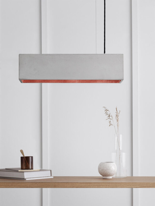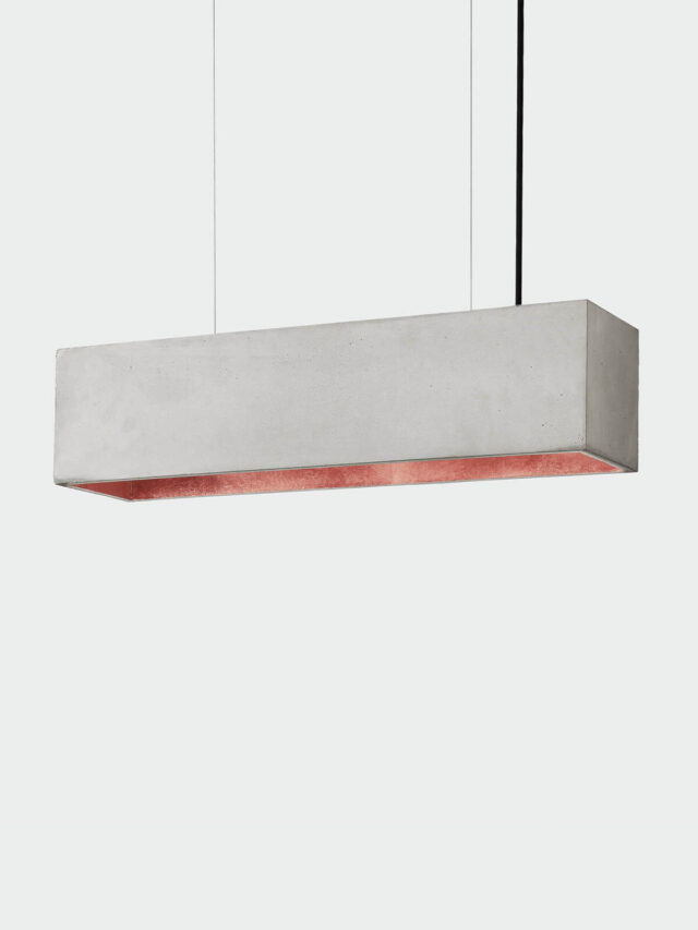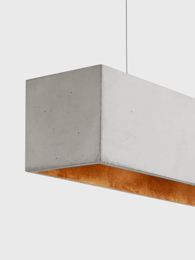 Du willst dir ein cooles Loft-Flair in die Wohnung holen? Mit der Esstischlampe B4 des Labels GANTlights schaffst du das ganz einfach. Ein Mix aus hochwertigem Beton und einer Innenseitenveredelung mit Gold, Silber oder Kupfer lässt auch dein Zuhause im hippen Industrial-Stil erstrahlen. Vielleicht fragst du dich, ob Beton nicht viel zu schwer für deine Zimmerdecke ist. Hier kannst du gerne nachlesen wie das funktioniert mit dem Beton und dem Gewicht. Mit den Maßen 56cm x 14 cm x 14cm eignet sich Esstischlampe B4 zudem besonders gut als Blickfang über einem großen Esstisch oder einer Theke. Durch die veredelten Innenseiten strahlt die Leuchte ein sehr gemütliches Licht aus. Esstischlampe B4 ist also das beste Beispiel für eine gelungene Kombination von kühlem, harten Material mit warmen, sanften Licht.