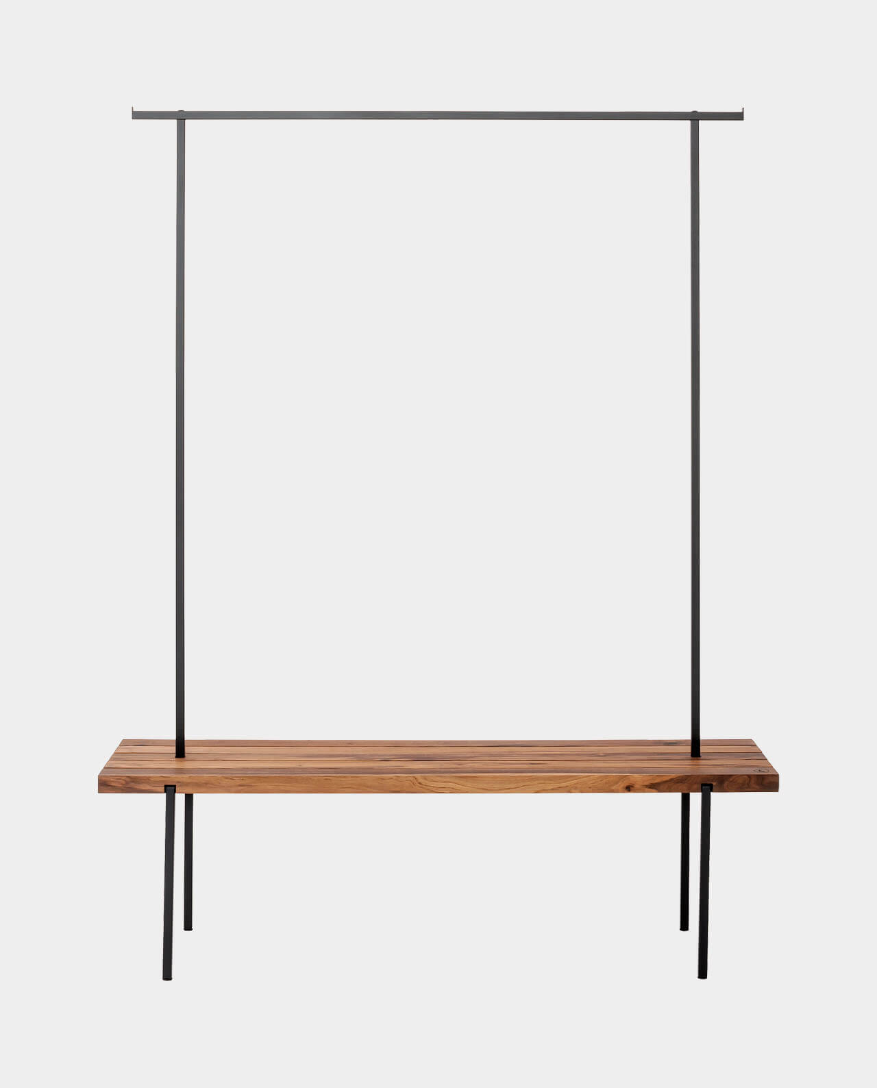 Das Gestänge der Garderobe ist so stabil, dass es ohne Schwierigkeiten, Jacken und Mäntel trägt, sowohl im Single-Haushalt als auch in der Großfamilie. Die Maße sind so gewählt, dass auch lange Mäntel aufgehängt werden können und mit kürzeren Jacken die Sitzfläche bequem zum Anziehen der Schuhe genutzt werden kann. Der Raum unter der Sitzfläche kann zum Abstellen und Aufbewahren genutzt werden.