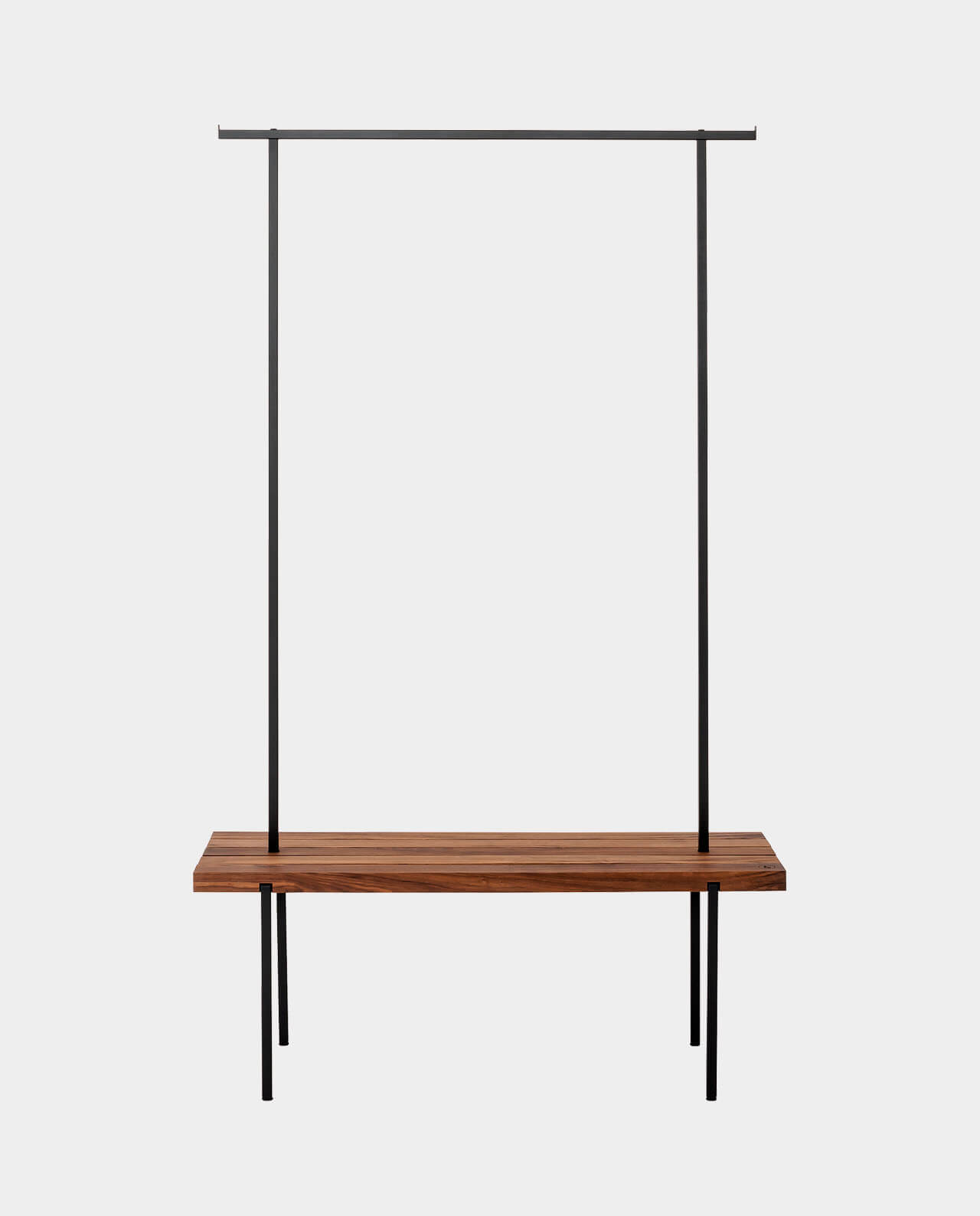 Das Gestänge der Garderobe ist so stabil, dass es ohne Schwierigkeiten, Jacken und Mäntel trägt, sowohl im Single-Haushalt als auch in der Großfamilie. Die Maße sind so gewählt, dass auch lange Mäntel aufgehängt werden können und mit kürzeren Jacken die Sitzfläche bequem zum Anziehen der Schuhe genutzt werden kann. Der Raum unter der Sitzfläche kann zum Abstellen und Aufbewahren genutzt werden.