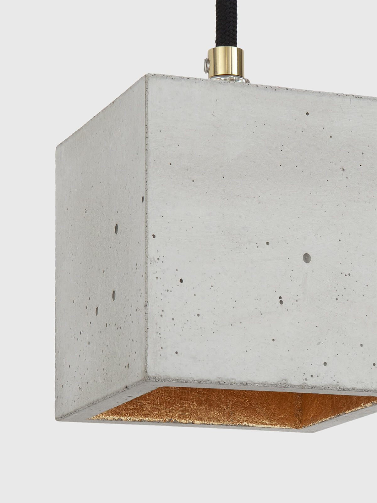 Die Betonleuchte B1 überzeugt mit ihrem minimalistischen Design und klaren Formen. Die Kombination aus hochwertigem, grauen Beton und der stilvollen Veredelung der Innenseite wirkt sehr luxuriös und besticht durch eine hohe Produktqualität. Sie strahlt zudem ein warmes Licht aus. Mit der Größe von 10cm x 10cm x 10cm kann sie sowohl einzeln als auch in Reihe über einem Esstisch, einer Bar oder frei im Raum in Szene gesetzt werden.