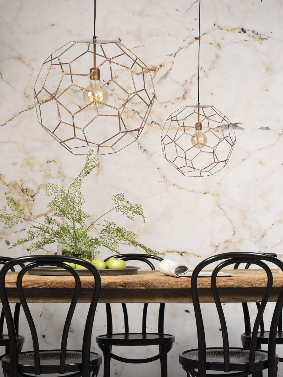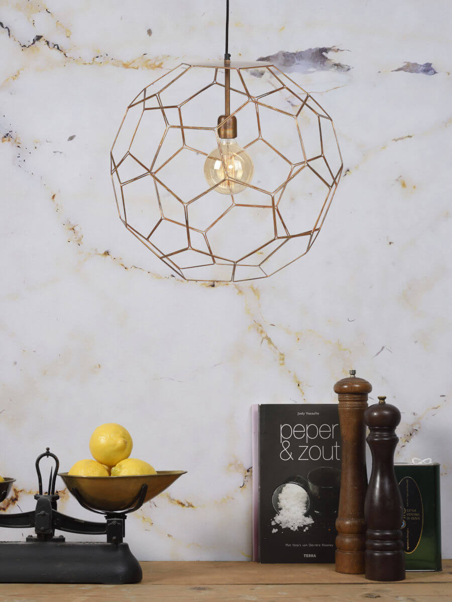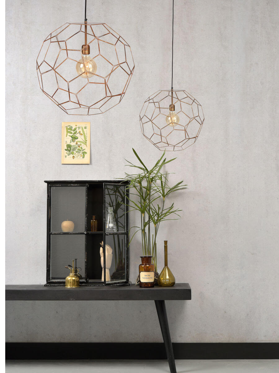 Die Kupfer Leuchte im modernen Design wird mit 250cm langem schwarzen Kabel geliefert. Das Kabel kann auf Wunschhöhe eingestellt werden.