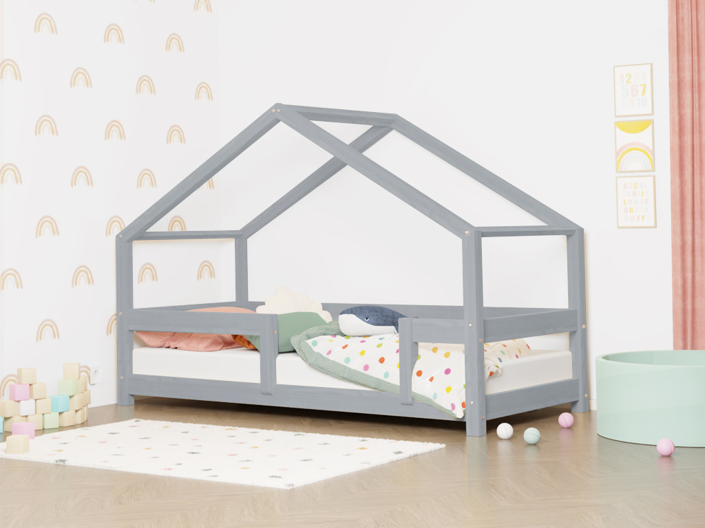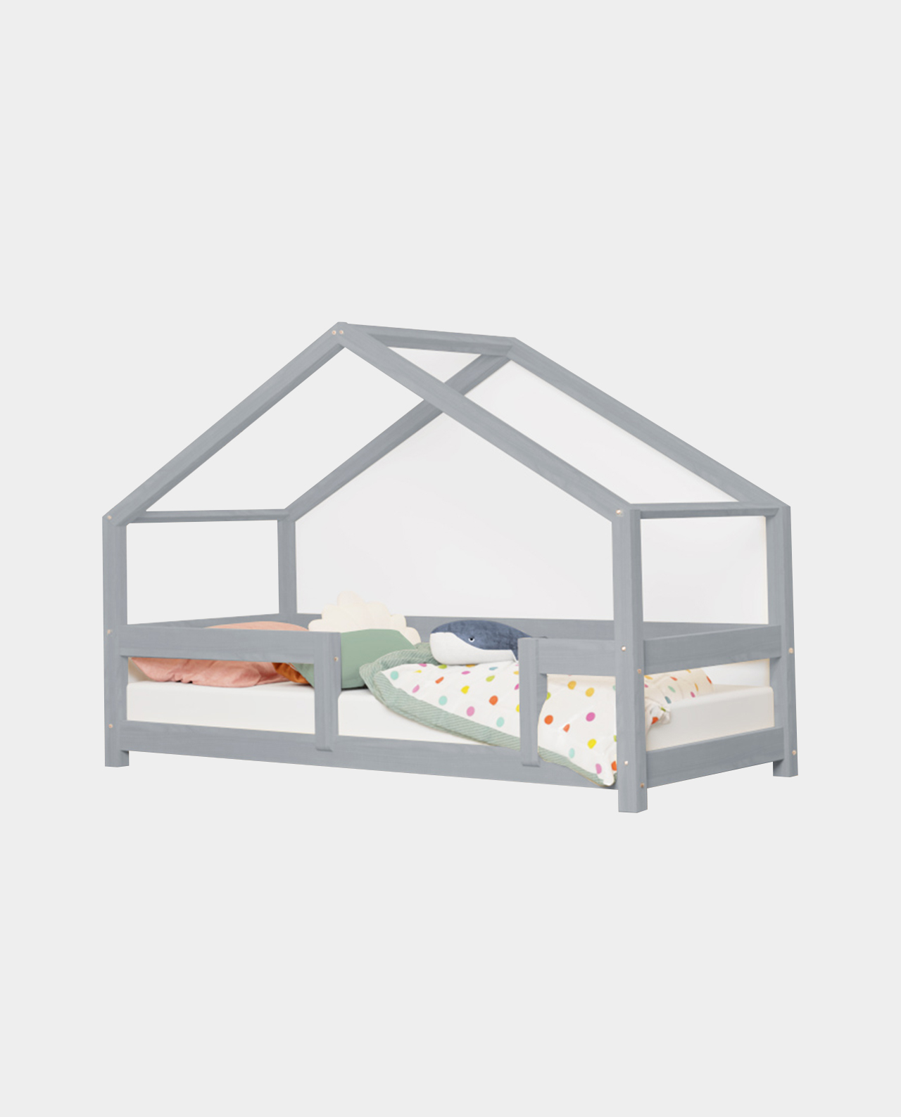 Dieses wundervolle Hausbett mit Rausfallschutz bietet deinem Kind alles was es braucht, um sich nachts richtig wohl zu fühlen. Der Rausfallschutz kann individuell angebracht werden – man kann ihn auch weglassen. Das Hausbett ist handgefertigt aus 6 cm dickem Vierkantholz. Es ist mit ökologischen Farben lackiert, die die Natur schützen und auch für Allergiker geeignet sind. Das Hausbett kann bis zu 150 kg tragen, so dass auch ein Elternteil zum Vorlesen der Gute-Nacht-Geschichte problemlos mit im Bett liegen kann. Der Bettrahmen befindet sich 6 cm über dem Boden, so dass dein Kind leicht aufstehen kann. Das gesamte Bett ist 146 cm hoch. Das Dach beginnt ab einer Höhe von 85 cm. Die Lieferung beinhaltet den Bettrahmen sowie einen passenden Lattenrost. Eine Matratze ist nicht inklusive. Wir empfehlen eine Matratze mit mindestens 18 cm Höhe. Du kannst das Hausbett mit den Zusatzfüßen FOOTS um 10-20 cm erhöhen, um darunter Platz zu schaffen! Die Möbel werden von BENLEMI, einem familiengeführten Unternehmen in der Tschechischen Republik in liebevoller Handarbeit gefertigt. Das Unternehmen BENLEMI gibt es seit 2015. Sie haben sich auf Kindermöbel aus natürlichen Materialien spezialisiert, da sie selbst Eltern von kleinen Kindern sind und nur das Beste für die Kleinen wollten. Daher bekommst du mit einem Produkt von BENLEMI auch nur das Beste für dein Kind! Jeder Baum wird von BENLEMI selbst ausgewählt. Das Holz stammt aus tschechischen Wäldern.