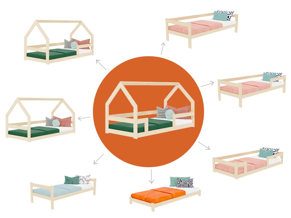 Das Kinderbett kann in sieben weitere Varianten verwandelt werden (siehe Bilder).