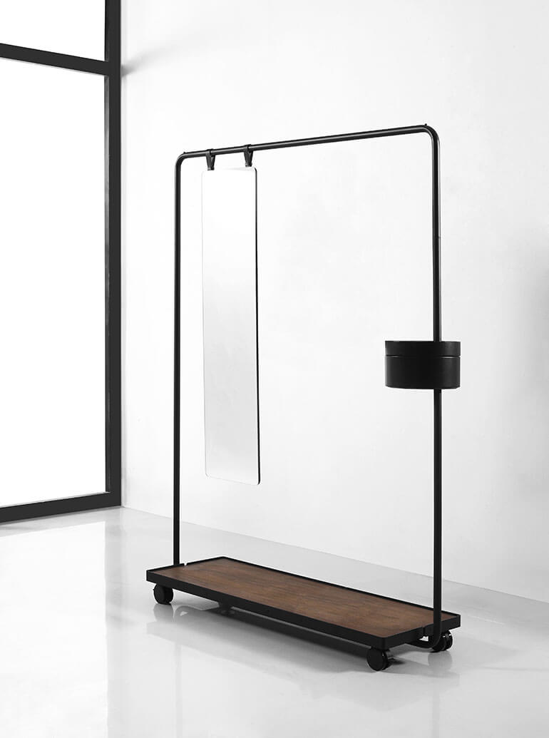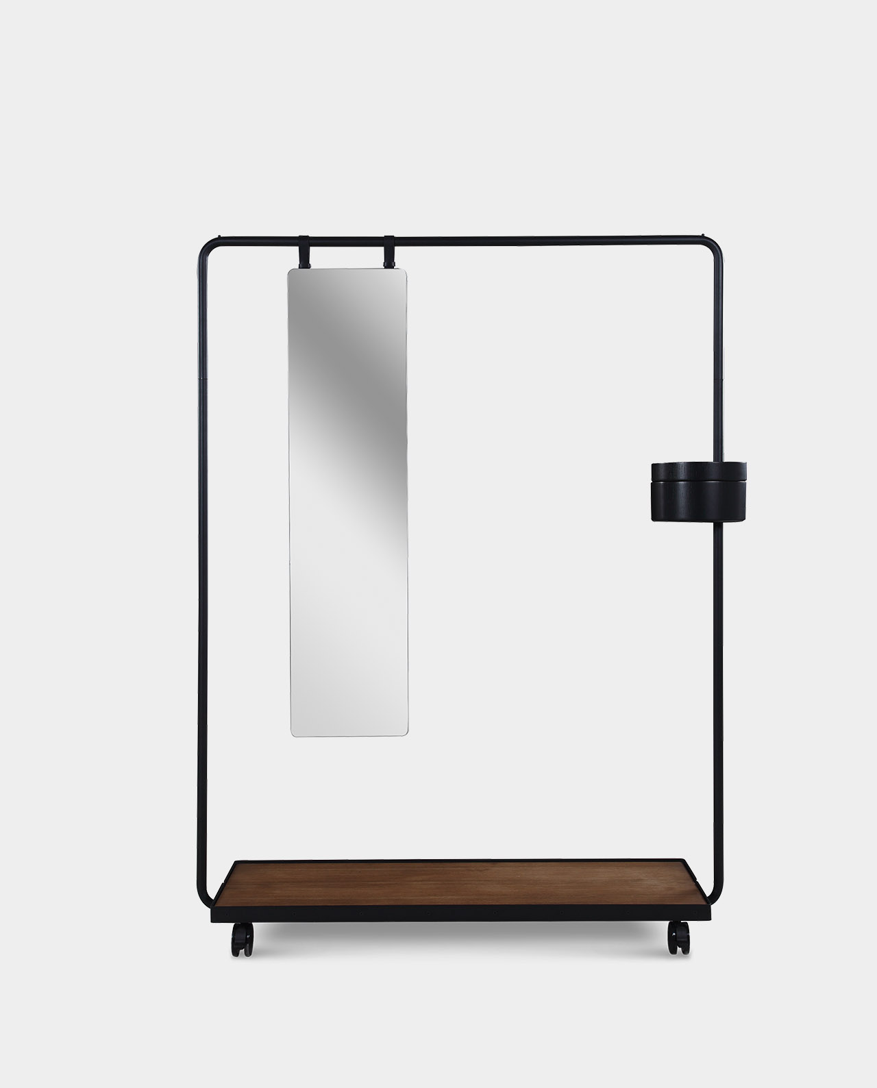 Klare Linie, leichte Strukturen und modernes Design machen den Kleiderständer DOLORES zu einem exquisiten Möbelstück und setzen deinen Stil in Szene. Kleidung aufhängen, Accessoires aufbewahren oder Schuhe aufstellen, alles ist möglich und sofort griffbereit. Ein besonderes Merkmal ist der Spiegel, der mit einem Ledergürtel befestigt wird. Die Kleiderstange ist zudem mit Rädern ausgestattet, die bei Bedarf fixiert werden können: clothes to go! Zudem befindet sich eine kleine Aufbewahrungsbox an der Seite des Kleiderständers – ideal zur Aufbewahrung von Schmuck!