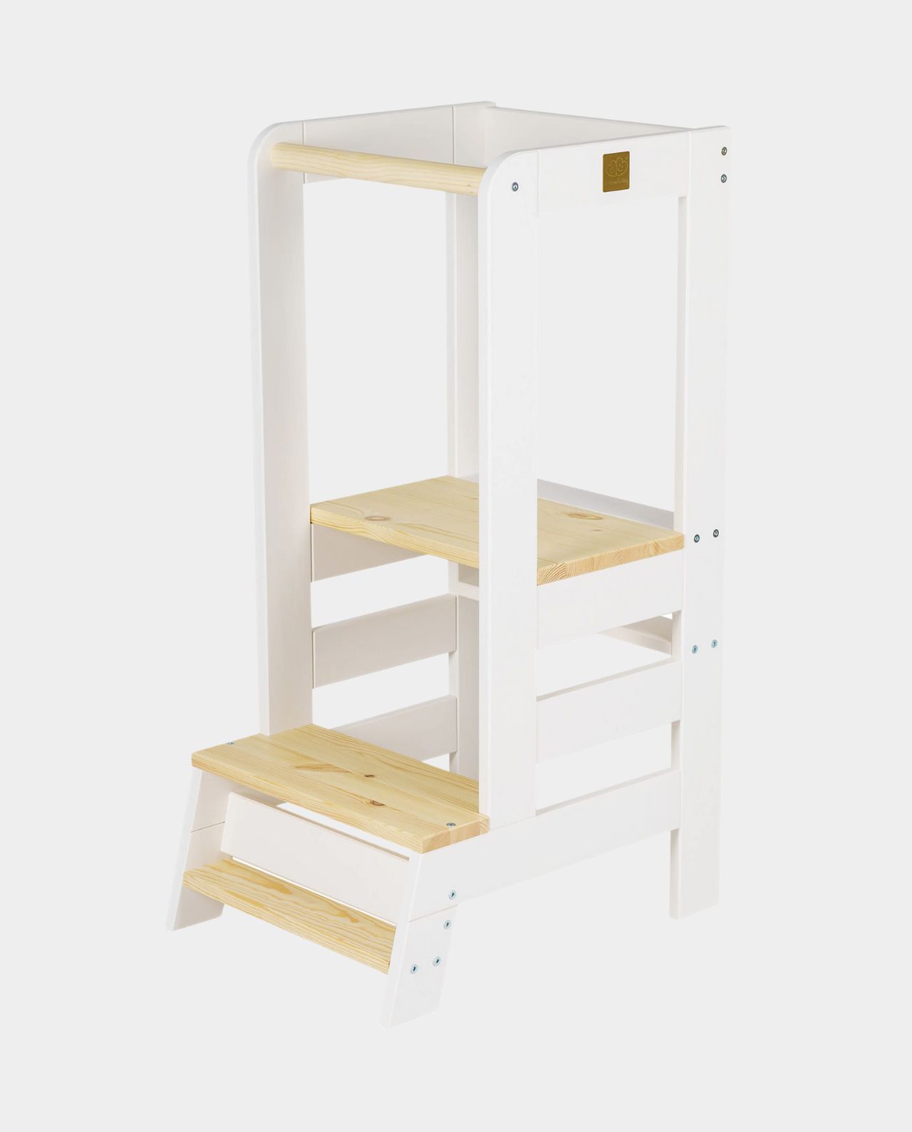 Der Lernturm NATURE, der gleichzeitig als Küchenhelfer dient, ist ein praktisches und vielseitiges Möbelstück der Marke MeowBaby für Kinder ab 18 Monate. Er besteht aus robustem Holz und bietet eine sichere Möglichkeit für Kinder, in der Küche mitzuhelfen und auf eine sichere Höhe zu gelangen. Der Lernturm fördert die Selbstständigkeit und das Lernen durch praktische Tätigkeiten. Er ist stabil, langlebig und fügt sich nahtlos in jede Kücheneinrichtung ein. Mit diesem Lernturm können Kinder aktiv und sicher am Küchenalltag teilnehmen. Die Plattform, auf der das Kind stabil steht, kann ohne Werkzeug in der Höhe verändert werden. Das Kind kann somit auf einer Höhe von 20cm, 33cm oder 46cm (vom Boden aus gemessen) sicher stehen.