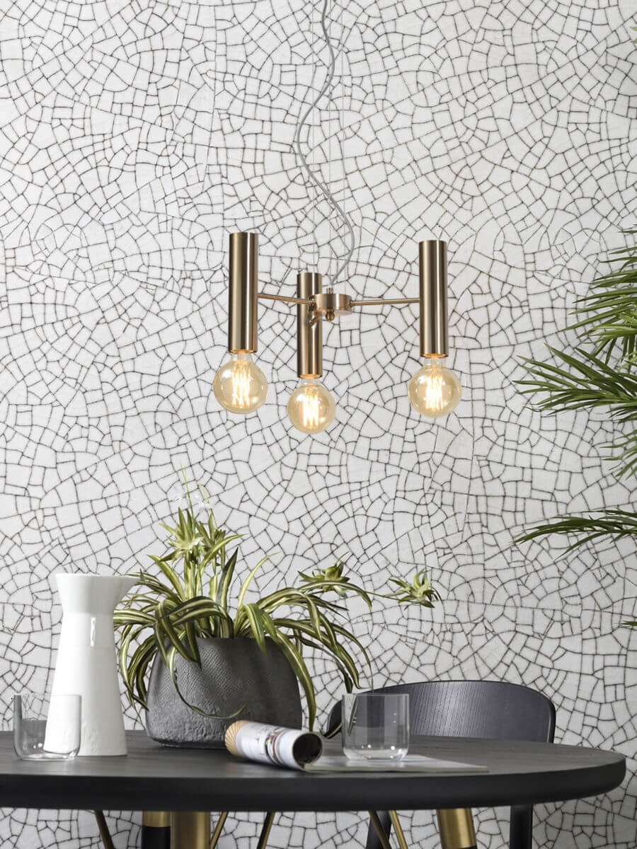 Der schicke Leuchter CANNES wird mit einem 250cm langen grauen Textilkabel geliefert.