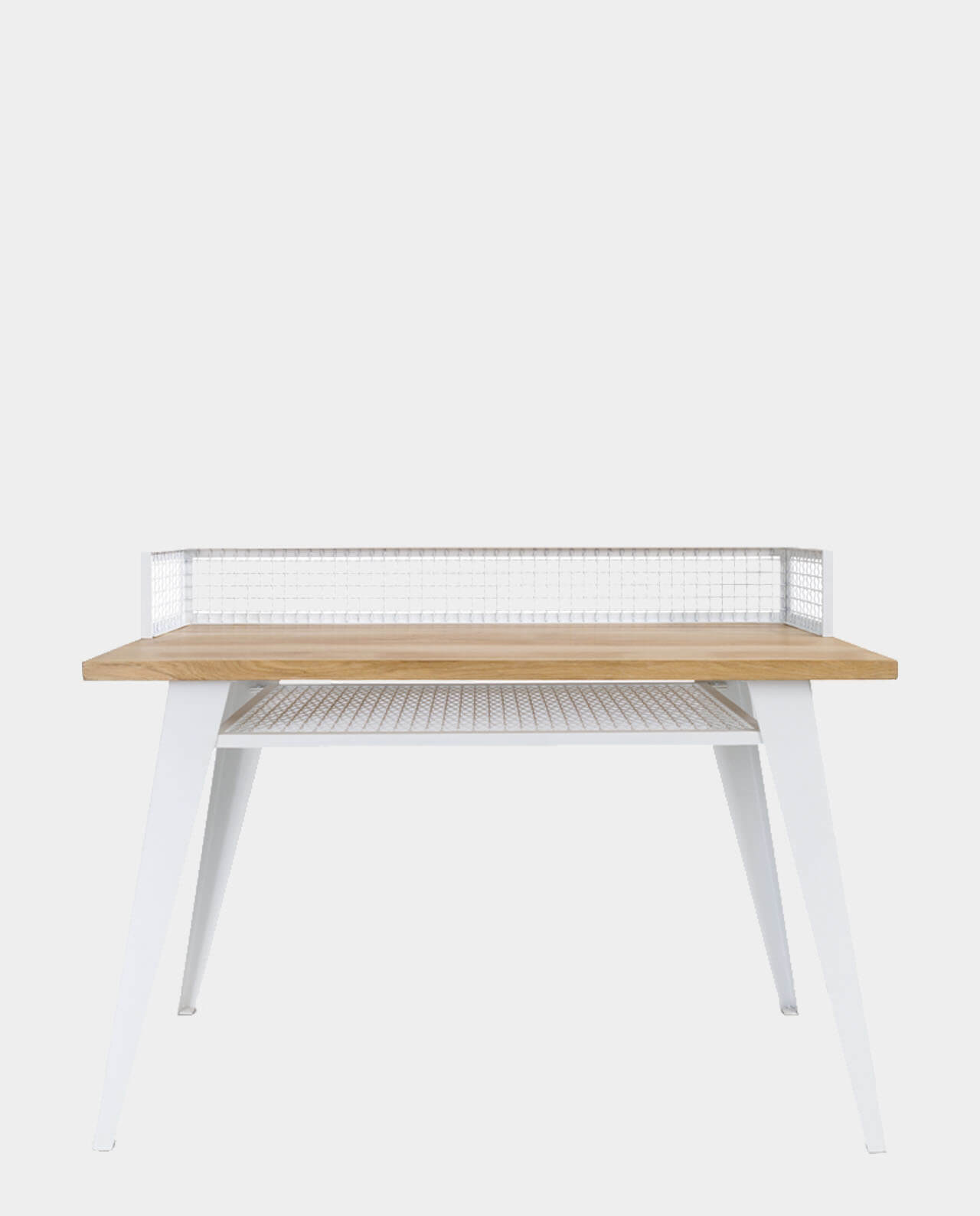 Du möchtest einen Designerschreibtisch aber nicht auf Funktionalität verzichten? Kein Problem! Schreibtisch ORATIO des deutschen Labels Notoria bietet dir nicht nur ein modernes Design aus hellem Holz und weißem Stahl, sondern auch genügend Platz für deine Arbeitsmaterialien. Die Schreibtischplatte wirkt durch das 3 cm dicke gewachste Eichenholz besonders wertig und robust. Aber auch die Tischbeine aus Stahl mit einer weißen Pulverbeschichtung geben dem Tisch Halt und Stabilität. Unter der Tischplatte befindet sich ein offenes Fach, wo du weitere Materialen schön verstauen kannst. Außerdem gibt es zu dem Schreibtisch einen Aufsatz, den du auf der Tischplatte anbringen kannst. Hier lassen sich zum Beispiel ganz einfach kleine Zettelchen mit einer Klammer befestigen oder er dient einfach nur dazu, dass nichts vom Tisch herunterfallen kann.