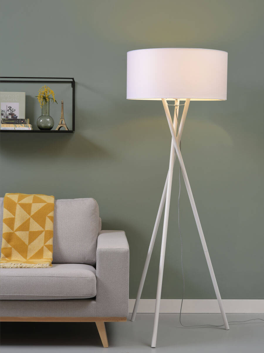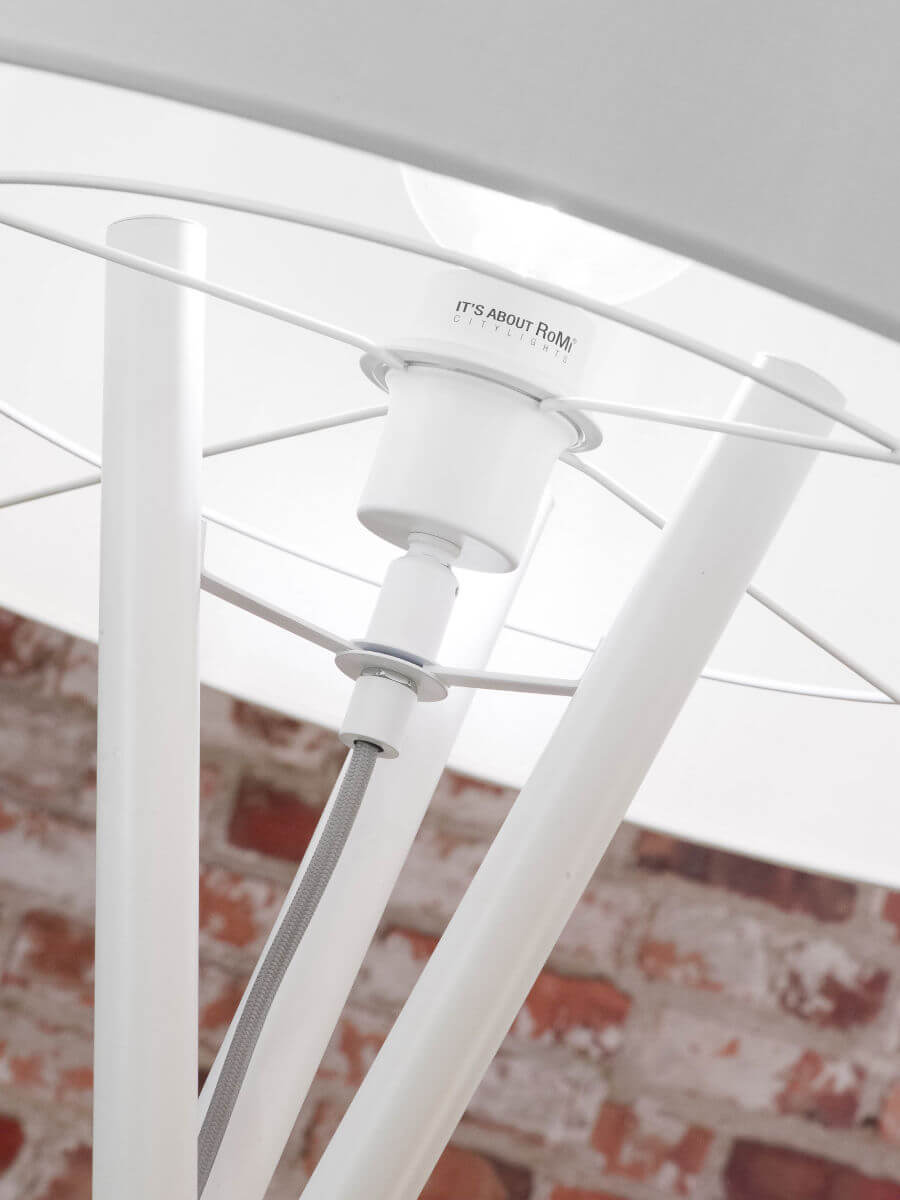 Das Label It’s About RoMi hat es wieder einmal geschafft uns mit der modernen Design Stehlampe HAMPTON zu überraschen. Das Design ist modern und minimalistisch. Die Beine der Tripod Stehlampe werden aus Metall gefertigt und dienen dem festen Stand der Lampe. Der Lampenschirm besteht aus Stoff. Je nachdem, ob du dich für die weiße oder die schwarze Leuchte entscheidest, haben die Leuchtenbeine die gleiche Farbe wie der Leuchtenschirm. Als Leuchtmittel eignen sich am besten LED, Glühlampen, Halogenlampen oder Leuchtstoffröhren mit 60W. Ein Leuchtmittel ist im Lieferumfang nicht enthalten. Das Licht wird wie gewohnt per Ein- und Aus-Schalter am Kabel geregelt.