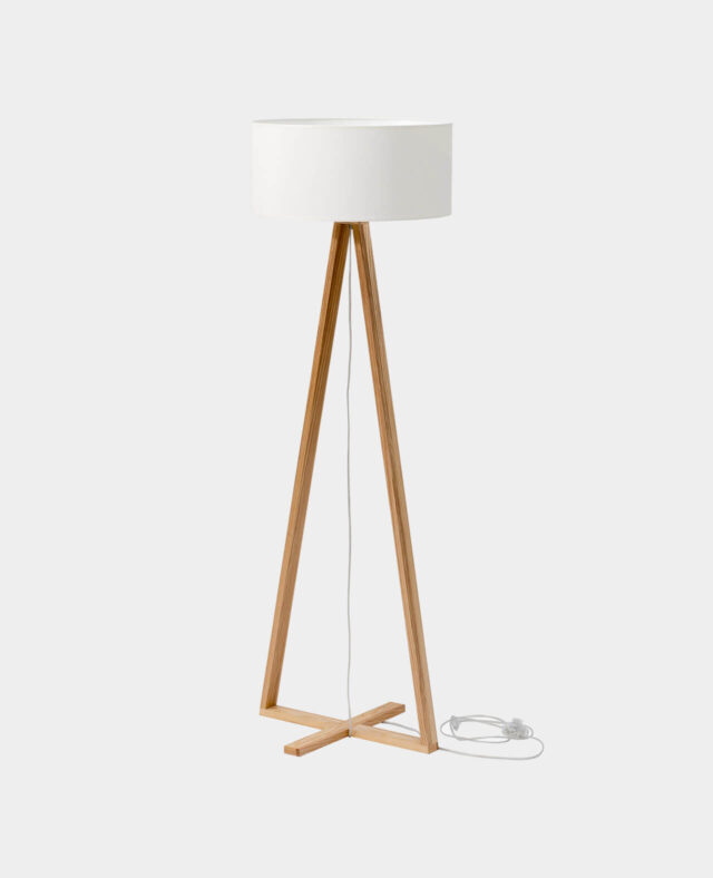 Die moderne Stehlampe TALES WHITE der Marke Ragaba bringt Licht ins Dunkle! Hier trifft ein einzigartiges Design auf absolute Funktionalität. Der Lampenschirm in der Farbe Weiß hat einen Durchmesser von 45 cm. Mit einer Höhe von insgesamt 145 cm besteht auch keine Gefahr diese Designer Leuchte übersehen zu können. Sie wird zum Blickfang in jedem Raum. Die Beine der Stehlampe in Form eine Dreiecks bestehen aus hellem Eschenholz und geben der Leuchte einen warmen und gemütlichen Charakter. Obwohl das Design sehr leicht wirkt, ist die Stehlampe enorm stabil. Der Lampenschirm besteht hingegen aus einem weißen Stoff, welcher ein sanftes und angenehmes Licht an den Raum abgibt. Die Farbe des Kabels ist Transparent.