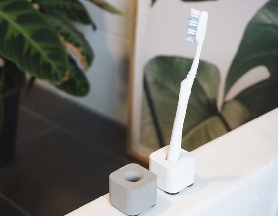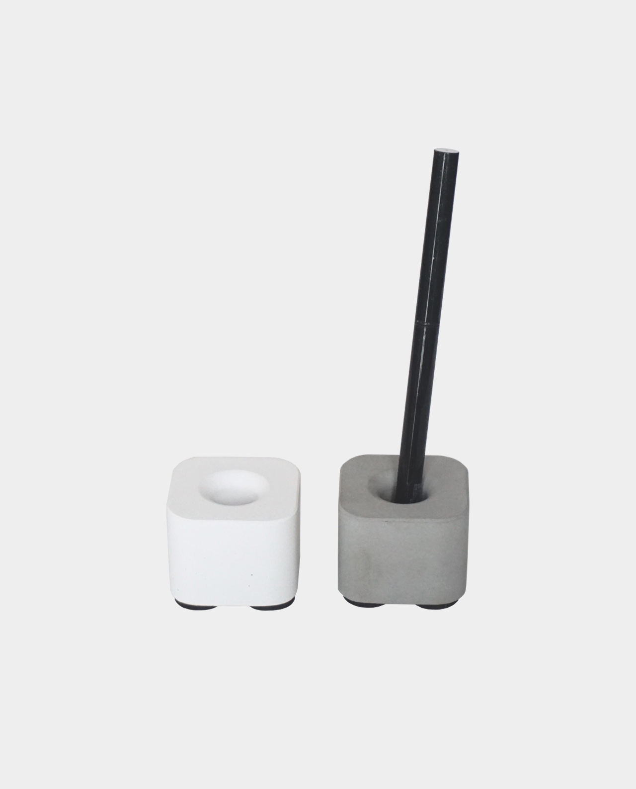 Mit dem Stiftehalter NIMA erhältst du zwei stylische Helfer für deinen Schreibtisch. Stelle einfach einen Stift in die Halterung aus Beton und er hält ganz von selbst. Das ist besonders praktisch, wenn man seinen Lieblingskuli immer gern griffbereit hat. Die Halterung eignet sich aber auch hervorragend als Badezimmer Accessoire, um deine Zahnbürste zu halten, wenn sie nicht gebraucht wird. Unter der Halterung sind vier kleine Gumminoppen angebracht, wodurch ein fester und sicherer Stand gewährleistet wird.